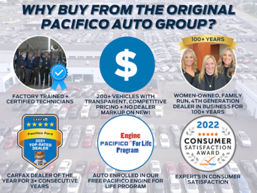 Many customers ask us, "How do you determine the price for this particular vehicle?" That's a great question! Let us explain our Pacifico Pricing Philosophy. We utilize Live Market Pricing. This approach ensures that our customers always receive the best value and the most competitive real-time Internet pricing on all pre-owned vehicles at Pacifico Ford, Mazda, and Hyundai. Instead of relying on traditional pricing methods, we employ advanced technology to search all regional websites for vehicles that are comparable to ours, taking into account similar mileage and features. Based on this real-time data, our pricing tool continuously evaluates and adjusts our prices. This way, our customers can be confident that they are getting the absolute best value when purchasing a vehicle from Pacifico Ford, Mazda, and Hyundai. Please note that all prices do not include applicable tax, title, license, and a $477 documentation fee.