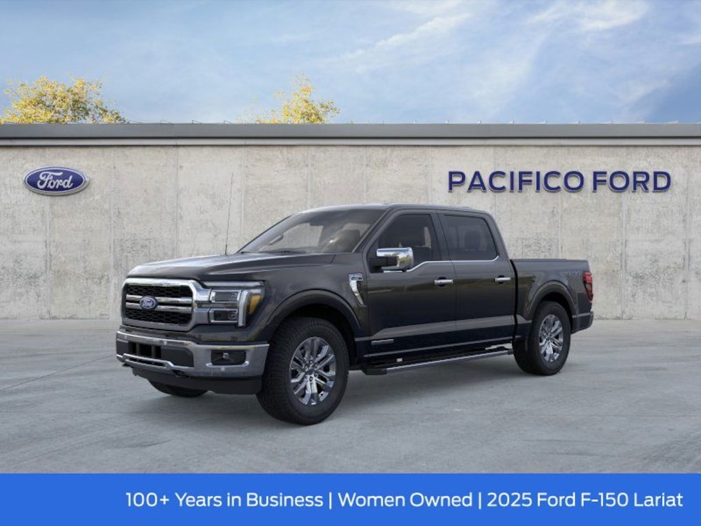 Pacifico Ford is proud to present you with another great new Ford. This 2025 Ford F-150 Lariat is loaded with the following Factory Options:Equipment Group 501A Mid (Wheels: 20" Chrome-Like PVD), Tow/Haul Package, 3.5L PowerBoost Full-Hybrid V6, 4WD, 4-Wheel Disc Brakes, 8 Speakers, ABS brakes, ActiveX Trimmed Bucket Seats, Adjustable pedals, Air Conditioning, Alloy wheels, AM/FM radio: SiriusXM with 360L, Auto High-beam Headlights, Auto-dimming door mirrors, Auto-dimming Rear-View mirror, Automatic temperature control, Brake assist, Bumpers: chrome, Chrome wheels, Compass, Delay-off headlights, Driver door bin, Driver vanity mirror, Dual front impact airbags, Dual front side impact airbags, Electronic Stability Control, Emergency communication system: SYNC 4 911 Assist, Front anti-roll bar, Front Bucket Seats, Front Center Armrest, Front dual zone A/C, Front fog lights, Front reading lights, Front wheel independent suspension, Fully automatic headlights, Garage door transmitter, Heated door mirrors, Heated front seats, Heated steering wheel, Illuminated entry, Low tire pressure warning, Memory seat, Navigation system: Connected Navigation, Occupant sensing airbag, Outside temperature display, Overhead airbag, Overhead console, Panic alarm, Passenger door bin, Passenger vanity mirror, Pedal memory, Power door mirrors, Power driver seat, Power passenger seat, Power steering, Power windows, Radio data system, Radio: B&O Sound System by Bang & Olufsen, Rain sensing wipers, Rear reading lights, Rear seat center armrest, Rear step bumper, Rear window defroster, Remote keyless entry, Security system, Speed control, Split folding rear seat, Steering wheel mounted audio controls, SYNC 4 w/Enhanced Voice Recognition, Tachometer, Telescoping steering wheel, Tilt steering wheel, Traction control, Trip computer, Turn signal indicator mirrors, Variably intermittent wipers, Ventilated front seats, Voltmeter, and Wheels: 18" Chrome-Like PVD.