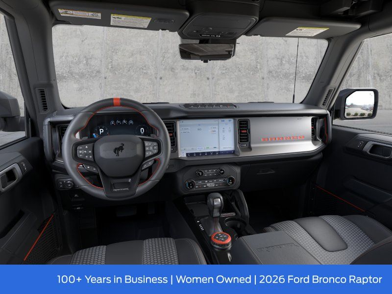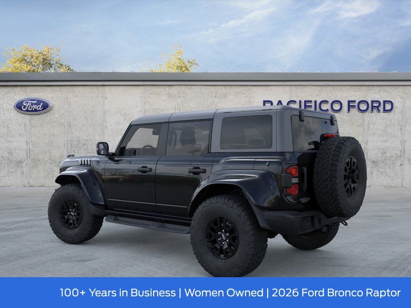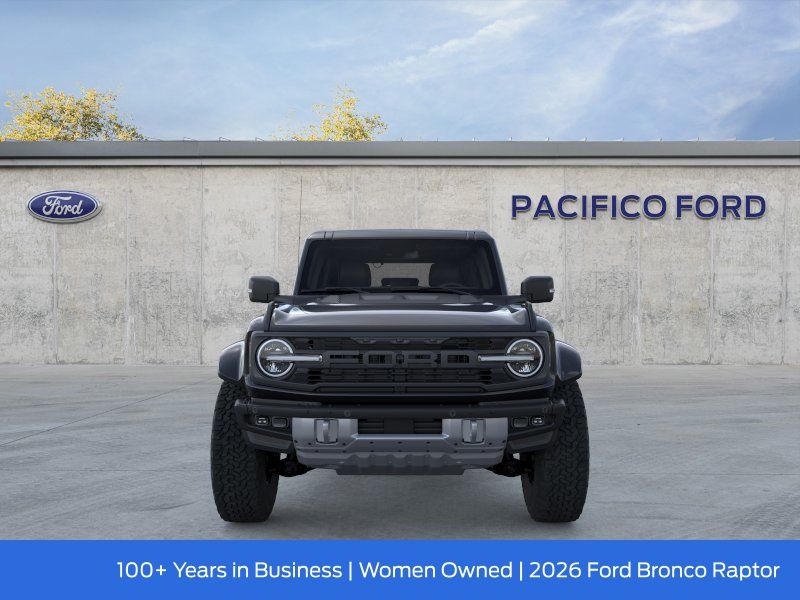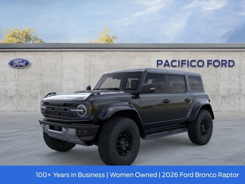 Pacifico Ford is proud to present you with another great new Ford. This 2026 Ford Bronco Raptor is loaded with the following Factory Options:Equipment Group 374A Lux Package (Marine Grade Vinyl Bucket Seats and Wheels: 17" Black High Gloss-Painted Aluminum), Ford Connectivity Package (1-Year Included), 12 Speakers, 4-Wheel Disc Brakes, ABS brakes, Air Conditioning, Alloy wheels, AM/FM radio: SiriusXM with 360L, Auto High-beam Headlights, Auto-dimming Rear-View mirror, Automatic temperature control, Brake assist, Compass, Connected Navigation, Convertible HardTop, Convertible roof lining, Delay-off headlights, Driver door bin, Driver vanity mirror, Dual front impact airbags, Dual front side impact airbags, Electronic Stability Control, Emergency communication system: 911 Assist, Exterior Parking Camera Rear, Front anti-roll bar, Front Bucket Seats, Front Center Armrest, Front dual zone A/C, Front fog lights, Front License Plate Bracket, Front reading lights, Front wheel independent suspension, Fully automatic headlights, Glass rear window, Heated door mirrors, Heated front seats, Heated steering wheel, Illuminated entry, Integrated roll-over protection, Leather Shift Knob, Low tire pressure warning, Navigation system: Connected Navigation, Occupant sensing airbag, Outside temperature display, Overhead airbag, Overhead console, Panic alarm, Passenger door bin, Passenger vanity mirror, Power door mirrors, Power steering, Power windows, Radio data system, Rear anti-roll bar, Rear seat center armrest, Rear window defroster, Rear window wiper, Remote keyless entry, Security system, SiriusXM with 360L, Speed control, Split folding rear seat, Steering wheel mounted audio controls, SYNC 4, Tachometer, Telescoping steering wheel, Tilt steering wheel, Traction control, Trip computer, Turn signal indicator mirrors, Variably intermittent wipers, and Voltmeter.