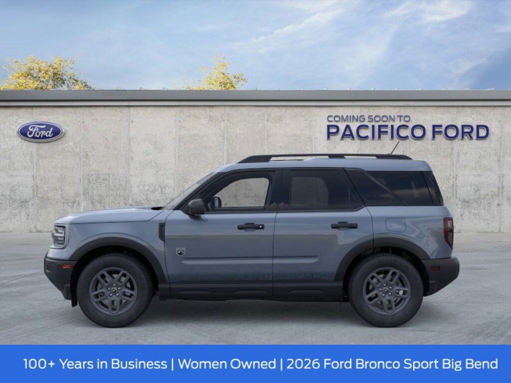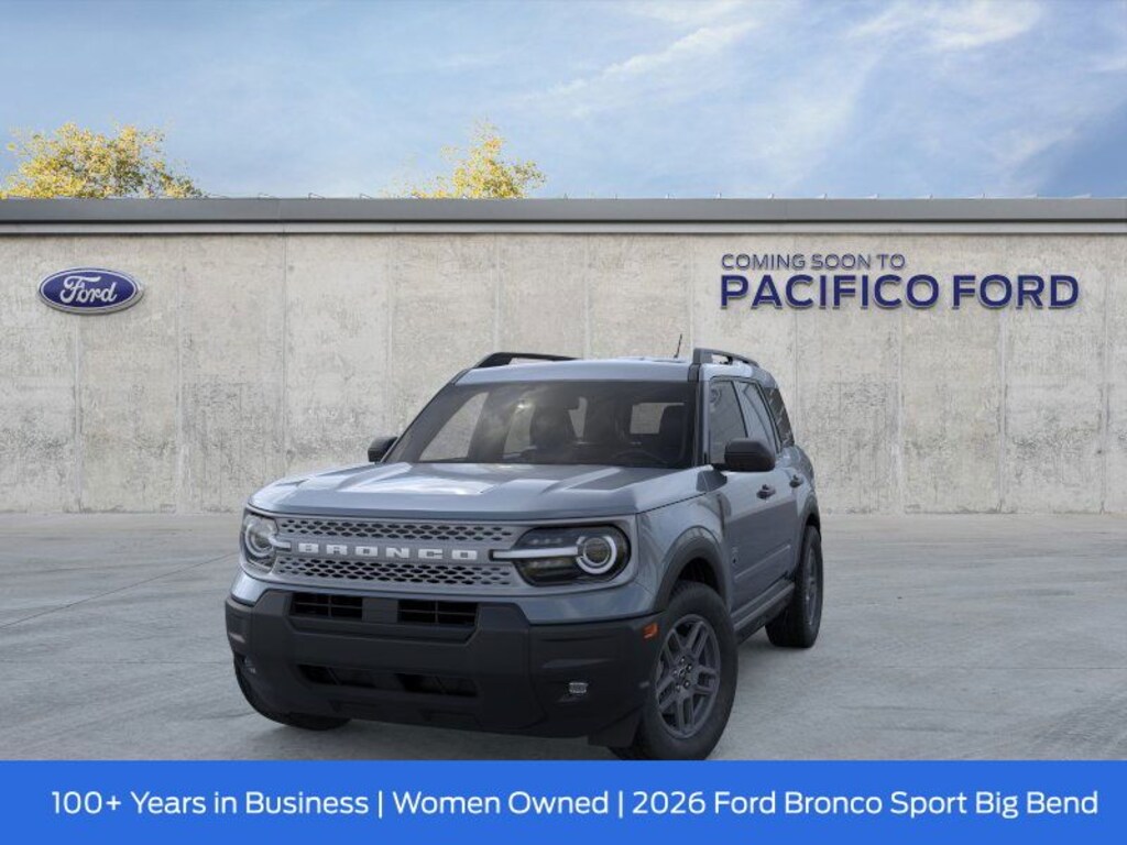 Pacifico Ford is proud to present you with another great new Ford. This 2026 Ford Bronco Sport Big Bend is loaded with the following Factory Options:Convenience Package (Front Driver/Passenger Seat Back Map Pockets, Heated 8-Way Power Driver's Seat, LED Fog Lamps, and Premium Wrapped Steering Wheel), Equipment Group 200A Standard Package (AM/FM Stereo, Cloth with Easy-to-Clean Front Bucket Seats, SiriusXM with 360L, SYNC 4 with Enhanced Voice Recognition, and Wheels: 17" Carbonized Gray Painted Aluminum), Ford Connectivity Package (1-Year Included), Internet access capable: 5G Modem - Ford Connectivity Package, 4-Wheel Disc Brakes, 6 Speakers, ABS brakes, Air Conditioning, Alloy wheels, AM/FM radio: SiriusXM with 360L, Apple CarPlay/Android Auto, Auto High-beam Headlights, Automatic temperature control, Brake assist, Compass, Delay-off headlights, Driver door bin, Driver vanity mirror, Dual front impact airbags, Dual front side impact airbags, Electronic Stability Control, Emergency communication system: SYNC 4 911 Assist, Exterior Parking Camera Rear, Four wheel independent suspension, Front anti-roll bar, Front Bucket Seats, Front Center Armrest, Front License Plate Bracket, Front reading lights, Fully automatic headlights, Heated door mirrors, Illuminated entry, Knee airbag, Liftgate with Black BRONCO SPORT Lettering, Low tire pressure warning, Occupant sensing airbag, Outside temperature display, Overhead airbag, Overhead console, Panic alarm, Passenger door bin, Passenger vanity mirror, Power door mirrors, Power steering, Power windows, Radio data system, Rear anti-roll bar, Rear Parking Sensors, Rear reading lights, Rear seat center armrest, Rear window defroster, Rear window wiper, Remote keyless entry, Security system, Speed control, Speed-sensing steering, Speed-Sensitive Wipers, Split folding rear seat, Steering wheel mounted audio controls, Tachometer, Telescoping steering wheel, Tilt steering wheel, Traction control, Trip computer, Variably intermittent wipers, and Wheels: 17" Carbonized Gray-Painted Aluminum. Recent Arrival!