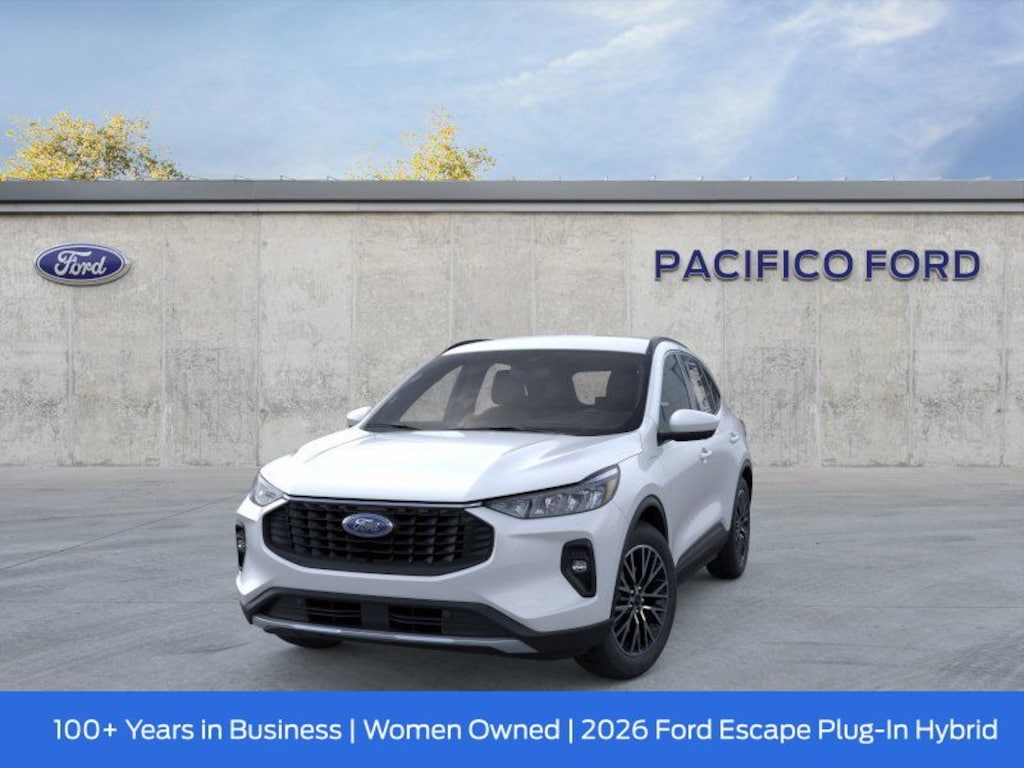 Pacifico Ford is proud to present you with another great new Ford. This 2026 Ford Escape Plug-In Hybrid is loaded with the following Factory Options:Equipment Group 700A, 2.5L iVCT, 2.91 Axle Ratio, 4-Wheel Disc Brakes, 6 Speakers, ABS brakes, Air Conditioning, Alloy wheels, AM/FM radio: SiriusXM, AM/FM Stereo, Auto High-beam Headlights, Automatic temperature control, Brake assist, Bumpers: body-color, Compass, Delay-off headlights, Driver door bin, Driver vanity mirror, Dual front impact airbags, Dual front side impact airbags, Electronic Stability Control, Emergency communication system: SYNC 4 911 Assist, Ford App, Four wheel independent suspension, Front anti-roll bar, Front Bucket Seats, Front Center Armrest, Front dual zone A/C, Front fog lights, Front License Plate Bracket, Front reading lights, Fully automatic headlights, Heated door mirrors, Heated front seats, Heated steering wheel, Heated Vinyl/Cloth Front Sport Contour Bucket Seats, Illuminated entry, Knee airbag, Low tire pressure warning, Navigation system: Connected Navigation, Occupant sensing airbag, Outside temperature display, Overhead airbag, Overhead console, Panic alarm, Passenger door bin, Passenger vanity mirror, Power door mirrors, Power driver seat, Power Liftgate, Power steering, Power windows, Radio data system, Rear anti-roll bar, Rear reading lights, Rear seat center armrest, Rear window defroster, Rear window wiper, Remote keyless entry, Speed control, Speed-sensing steering, Speed-Sensitive Wipers, Split folding rear seat, Spoiler, Steering wheel mounted audio controls, SYNC 4 w/Enhanced Voice Recognition, Telescoping steering wheel, Tilt steering wheel, Traction control, Trip computer, Variably intermittent wipers, and Wheels: 18" Machined-Face Magnetic Aluminum.