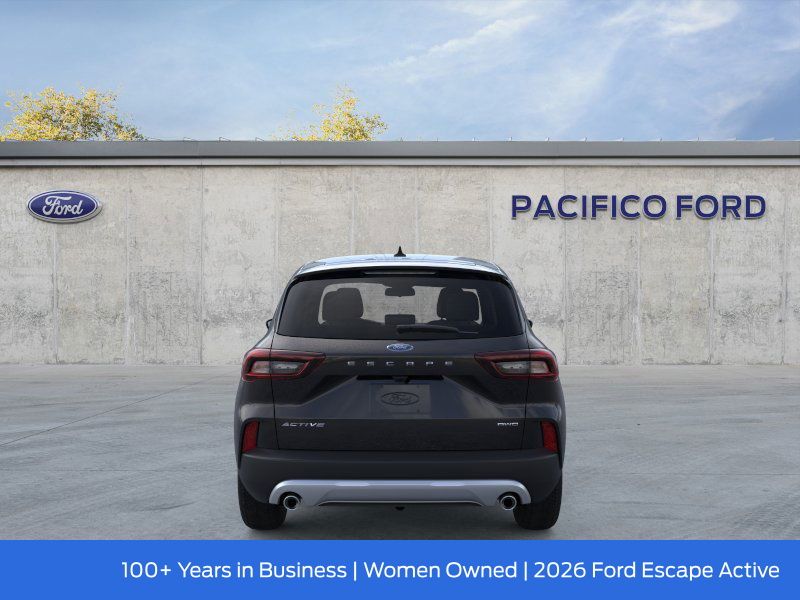 Pacifico Ford is proud to present you with another great new Ford. This 2026 Ford Escape Active is loaded with the following Factory Options:Equipment Group 200A (3.81 Axle Ratio, 6-Way Manual Driver Seat, Radio: AM/FM Stereo with SiriusXM 360L, Unique Cloth Front Bucket Seats, and Wheels: 17" Shadow Silver-Painted Aluminum), AWD, 4-Wheel Disc Brakes, 6 Speakers, ABS brakes, Air Conditioning, Alloy wheels, AM/FM radio: SiriusXM 360L, Auto High-beam Headlights, Automatic temperature control, Brake assist, Compass, Delay-off headlights, Driver door bin, Driver vanity mirror, Dual front impact airbags, Dual front side impact airbags, Electronic Stability Control, Emergency communication system: SYNC 4 911 Assist, Four wheel independent suspension, Front anti-roll bar, Front Bucket Seats, Front dual zone A/C, Front License Plate Bracket, Front reading lights, Fully automatic headlights, Illuminated entry, Knee airbag, Low tire pressure warning, Occupant sensing airbag, Outside temperature display, Overhead airbag, Overhead console, Panic alarm, Passenger door bin, Passenger vanity mirror, Power door mirrors, Power Liftgate, Power steering, Power windows, Radio data system, Rear anti-roll bar, Rear reading lights, Rear window defroster, Rear window wiper, Remote keyless entry, Speed control, Speed-sensing steering, Speed-Sensitive Wipers, Split folding rear seat, Spoiler, Steering wheel mounted audio controls, Tachometer, Telescoping steering wheel, Tilt steering wheel, Traction control, Trip computer, and Variably intermittent wipers.