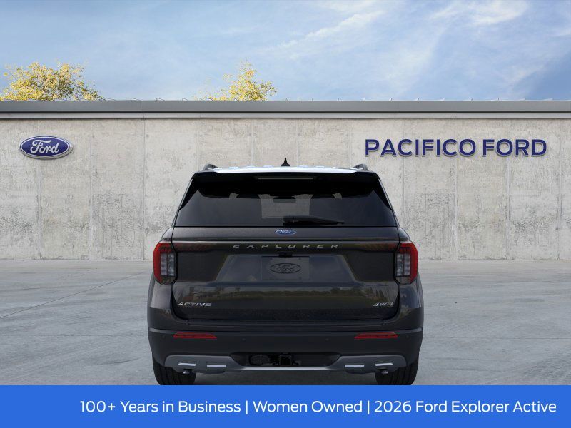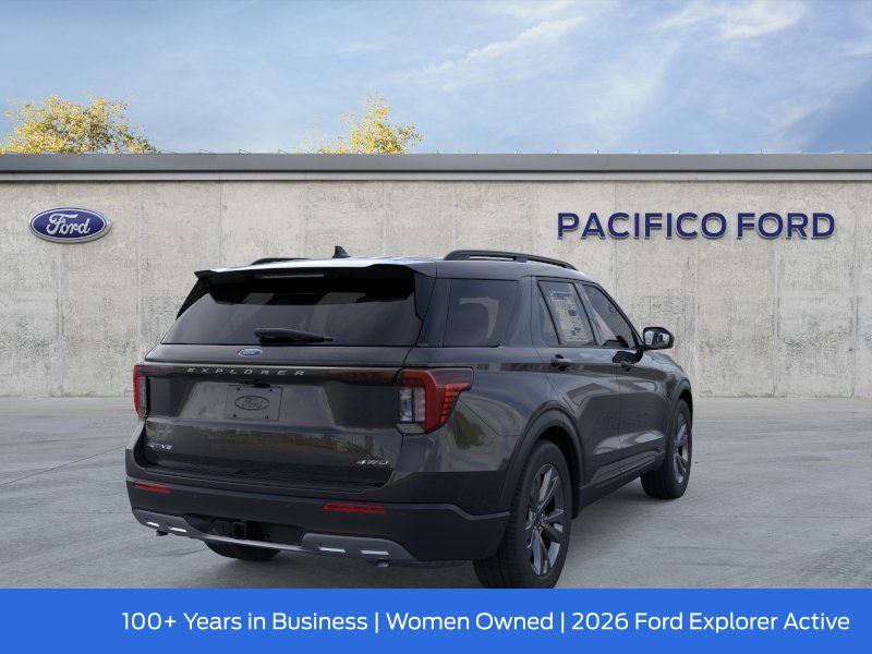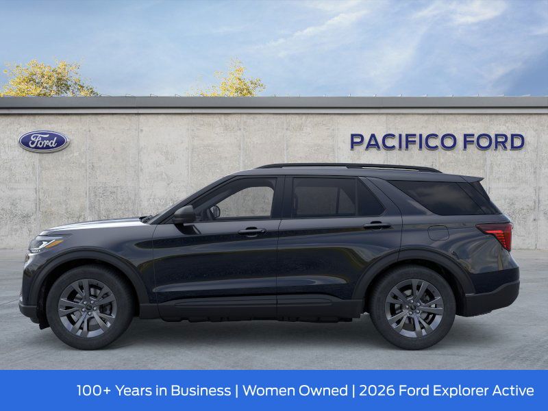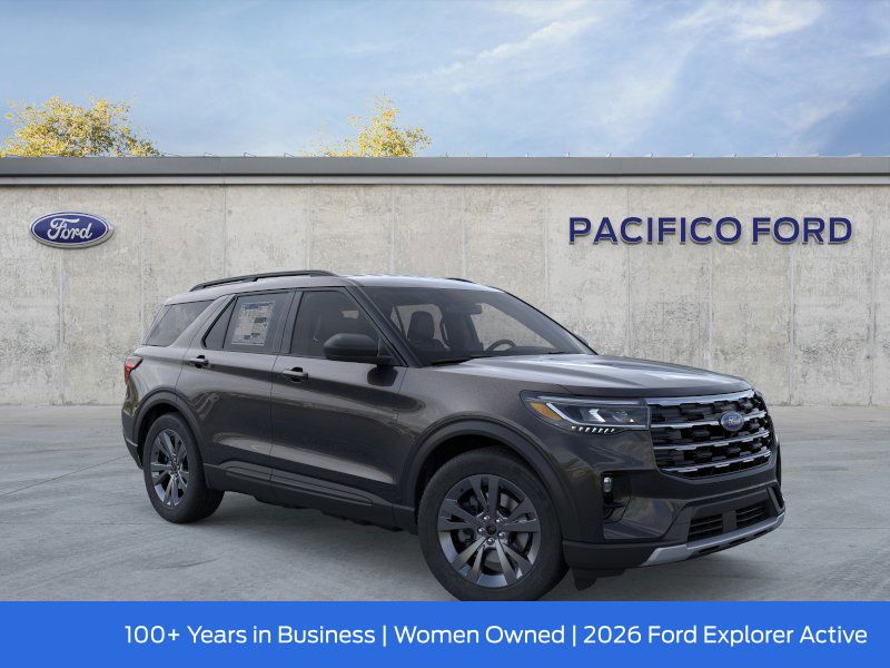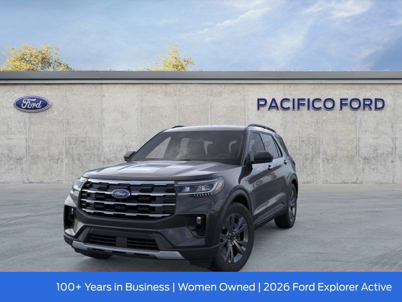 Pacifico Ford is proud to present you with another great new Ford. This 2026 Ford Explorer Active is loaded with the following Factory Options:4WD, 2nd Row 35/30/35 Bench with E-Z Entry and Armrest, 3rd row seats: bench, 4-Wheel Disc Brakes, 6 Speakers, ABS brakes, Air Conditioning, Alloy wheels, AM/FM radio: SiriusXM with 360L, AM/FM Stereo, Apple CarPlay/Android Auto, Auto High-beam Headlights, Automatic temperature control, Brake assist, Bumpers: body-color, Compass, Delay-off headlights, Driver door bin, Driver vanity mirror, Dual front impact airbags, Dual front side impact airbags, Electronic Stability Control, Emergency communication system: 911 Assist, Exterior Parking Camera Rear, Four wheel independent suspension, Front and 2nd Rows Floor Liners with Carper Floor Mats, Front anti-roll bar, Front Bucket Seats, Front Center Armrest, Front dual zone A/C, Front reading lights, Fully automatic headlights, Heated door mirrors, Illuminated entry, Knee airbag, Low tire pressure warning, Navigation System, Occupant sensing airbag, Outside temperature display, Overhead airbag, Overhead console, Panic alarm, Passenger door bin, Passenger vanity mirror, Power door mirrors, Power driver seat, Power steering, Power windows, Rear air conditioning, Rear anti-roll bar, Rear reading lights, Rear window defroster, Rear window wiper, Remote keyless entry, Security system, Speed control, Speed-sensing steering, Speed-Sensitive Wipers, Split folding rear seat, Spoiler, Steering wheel mounted audio controls, Tachometer, Telescoping steering wheel, Tilt steering wheel, Traction control, Trip computer, Variably intermittent wipers, and Wheels: 18" Sparkle Silver-Painted Aluminum.