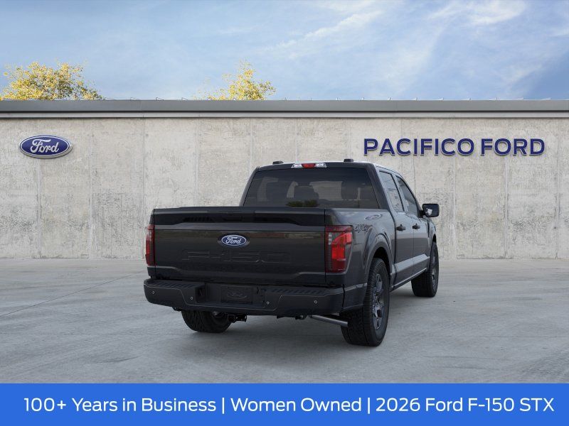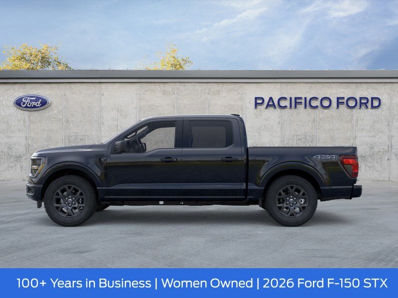 Pacifico Ford is proud to present you with another great new Ford. This 2026 Ford F-150 STX is loaded with the following Factory Options:Equipment Group 200A Mid (12" Cluster Display, 3.55 Axle Ratio, LED Fog Lamps with LED Cornering Lamp, Radio: AM/FM Stereo with SiriusXM 360L, SYNC 4 with Enhanced Voice Recognition, Unique Sport Cloth 40/Console/40 Front-Seats, and Wheels: 20" Dark Gray Aluminum), Ford Connectivity Package (1-Year Included), GVWR: 6,650 lbs Payload Package, Internet access capable: 5G Modem - Ford Connectivity Package, 4WD, 4-Wheel Disc Brakes, 6 Speakers, ABS brakes, Air Conditioning, Alloy wheels, AM/FM radio: SiriusXM with 360L, Auto High-beam Headlights, Brake assist, Bumpers: body-color, Compass, Delay-off headlights, Driver door bin, Dual front impact airbags, Dual front side impact airbags, Electronic Stability Control, Emergency communication system: SYNC 4 911 Assist, Front anti-roll bar, Front Bucket Seats, Front Center Armrest, Front reading lights, Front wheel independent suspension, Fully automatic headlights, Heated door mirrors, Illuminated entry, Low tire pressure warning, Occupant sensing airbag, Outside temperature display, Overhead airbag, Overhead console, Panic alarm, Passenger door bin, Passenger vanity mirror, Power door mirrors, Power steering, Power windows, Radio data system, Rear step bumper, Rear window defroster, Remote keyless entry, Security system, Speed control, Split folding rear seat, Steering wheel mounted audio controls, Tachometer, Telescoping steering wheel, Tilt steering wheel, Traction control, Trip computer, Variably intermittent wipers, and Wheels: 18" Gloss Black.