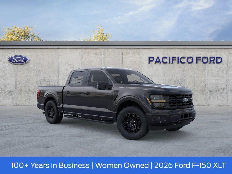 Pacifico Ford is proud to present you with another great new Ford. This 2026 Ford F-150 XLT is loaded with the following Factory Options:Equipment Group 302A Mid (18" Painted Aluminum Wheels, 360 Degree Camera, 400W Pro Power Onboard (cab & Bed), Adaptive Cruise Control with Stop and Go, Auto-Dimming Rear-View Mirror, Body-Color Door Handles, Chrome Front and Rear Bumpers, Cloth 40/20/40 Front Seat, Dual-Zone Electronic Automatic Temperature Control, Ford Co-Pilot360 Assist 2.0, Front Parking Sensors, Heated Front Seats, Intelligent Access with Push Button Start, Power Glass Heated Sideview Mirrors, Power-Sliding Rear Window, Radio: AM/FM Stereo with SiriusXM 360L, Remote Start System with Remote Tailgate Release, SYNC 4 with Enhanced Voice Recognition, Towing Technology, and Wrapped Steering Wheel), Ford Connectivity Package (1-Year Included), GVWR: 6,650 lbs Payload Package, Internet access capable: 5G Modem - Ford Connectivity Package, XLT Black Appearance Package (6" Black Running Boards, Black Exterior Badging, Black Grille, Body-Color Front and Rear Bumpers, Dark Interior Appliques, Gray Box Side Decal, Unique Sport Cloth 40/Console/40 Front-Seats, and Wheels: 18" Gloss Black), 4WD, 4-Wheel Disc Brakes, 7 Speakers, ABS brakes, Air Conditioning, Alloy wheels, AM/FM radio: SiriusXM with 360L, Auto High-beam Headlights, Brake assist, Bumpers: body-color, Compass, Delay-off headlights, Driver door bin, Driver vanity mirror, Dual front impact airbags, Dual front side impact airbags, Electronic Stability Control, Emergency communication system: SYNC 4 911 Assist, Front anti-roll bar, Front Center Armrest, Front fog lights, Front License Plate Bracket, Front reading lights, Front wheel independent suspension, Fully automatic headlights, Heated door mirrors, Illuminated entry, Low tire pressure warning, Occupant sensing airbag, Outside temperature display, Overhead airbag, Overhead console, Panic alarm, Passenger door bin, Passenger vanity mirror, Power door mirrors, Power steering, Power windows, Radio data system, Rear reading lights, Rear step bumper, Rear window defroster, Remote keyless entry, Security system, Speed control, Split folding rear seat, Steering wheel mounted audio controls, Tachometer, Telescoping steering wheel, Tilt steering wheel, Traction control, Trip computer, and Variably intermittent wipers.