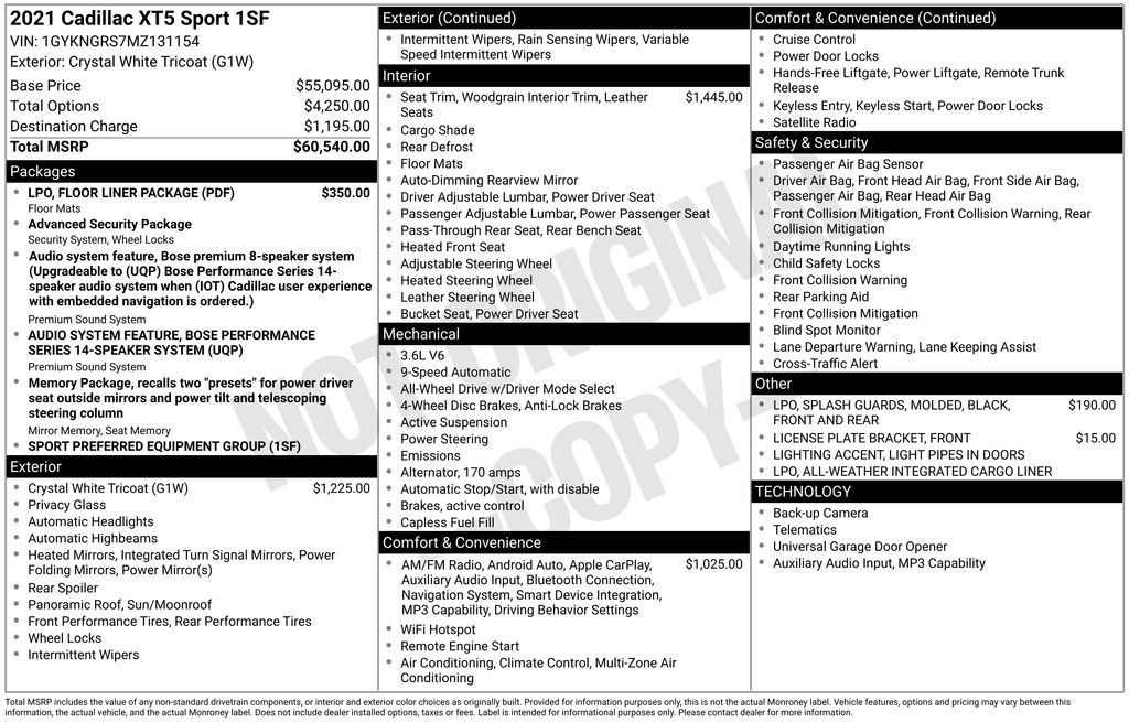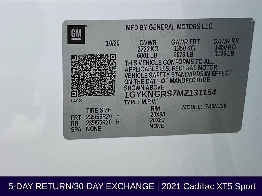 Crystal White Tricoat 2021 Cadillac XT5 Sport 4D Sport Utility AWD 9-Speed Automatic 3.6L V6 DI VVT