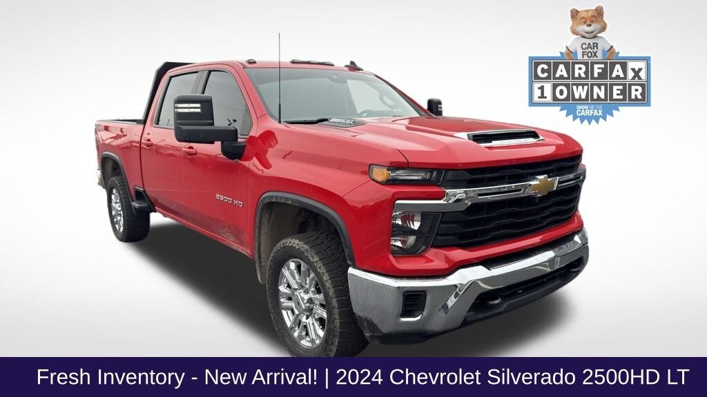 10-Speed Automatic, 4WD, Black Cloth. Clean CARFAX. Red Hot 2024 Chevrolet Silverado 2500HD LT 4D Crew Cab 4WD 10-Speed Automatic 6.6L V8