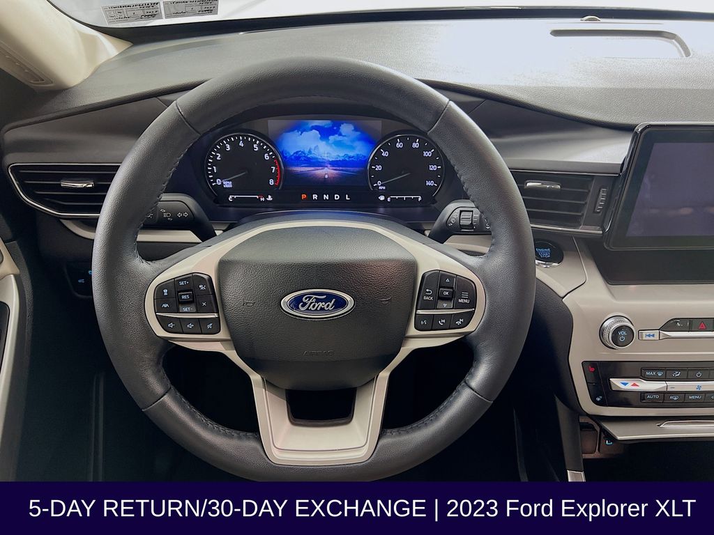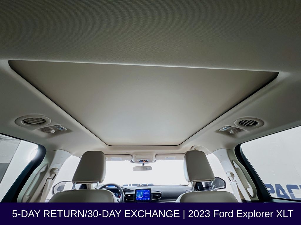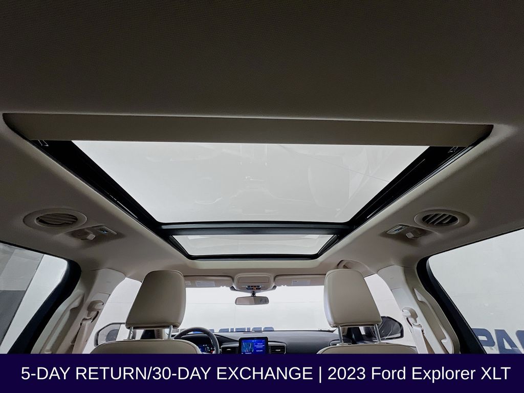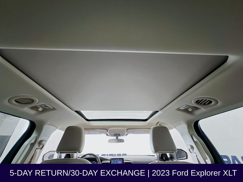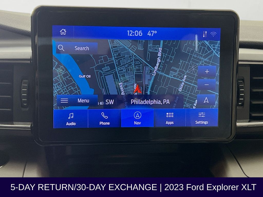 The standout features of this Explorer XLT include the Ford Co-Pilot360 Assist+ suite, which boasts Intelligent Adaptive Cruise Control, Evasive Steering Assist, and Speed Sign Recognition. The voice-activated touchscreen navigation system and twin-panel moonroof further enhance the driving experience, providing both convenience and a touch of luxury.