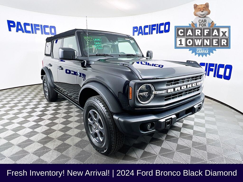 The 2024 Ford Bronco Black Diamond 4x4 is a trail-ready SUV with hardcore off-road equipment, modern tech, and rugged durability. With low miles, a clean 1-owner CARFAX, and Pacifico benefits, this Bronco is built for adventure and everyday reliability.