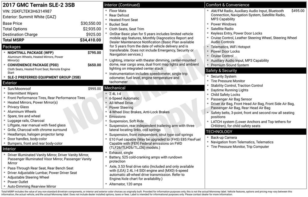 Used 2017 GMCTerrain SLE-2 SUV 4-Cylinder SIDI DOHC VVT