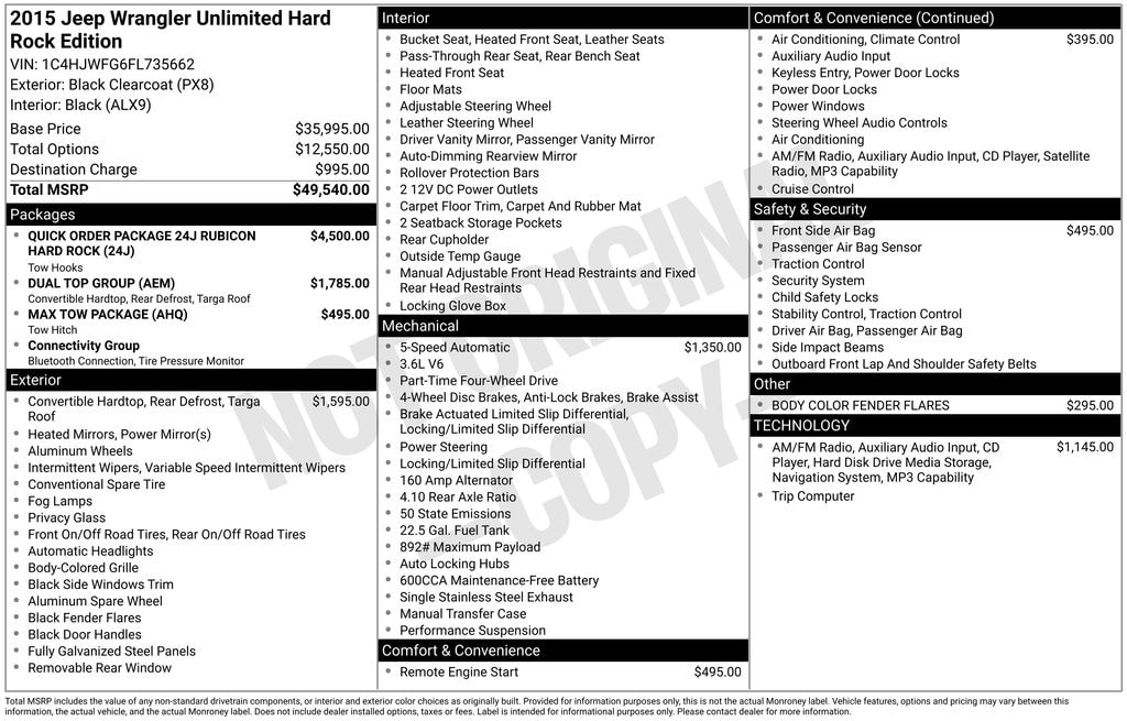 2015 Jeep Wrangler Unlimited Rubicon Hard Rock â" Loaded Original MSRP: $49,045