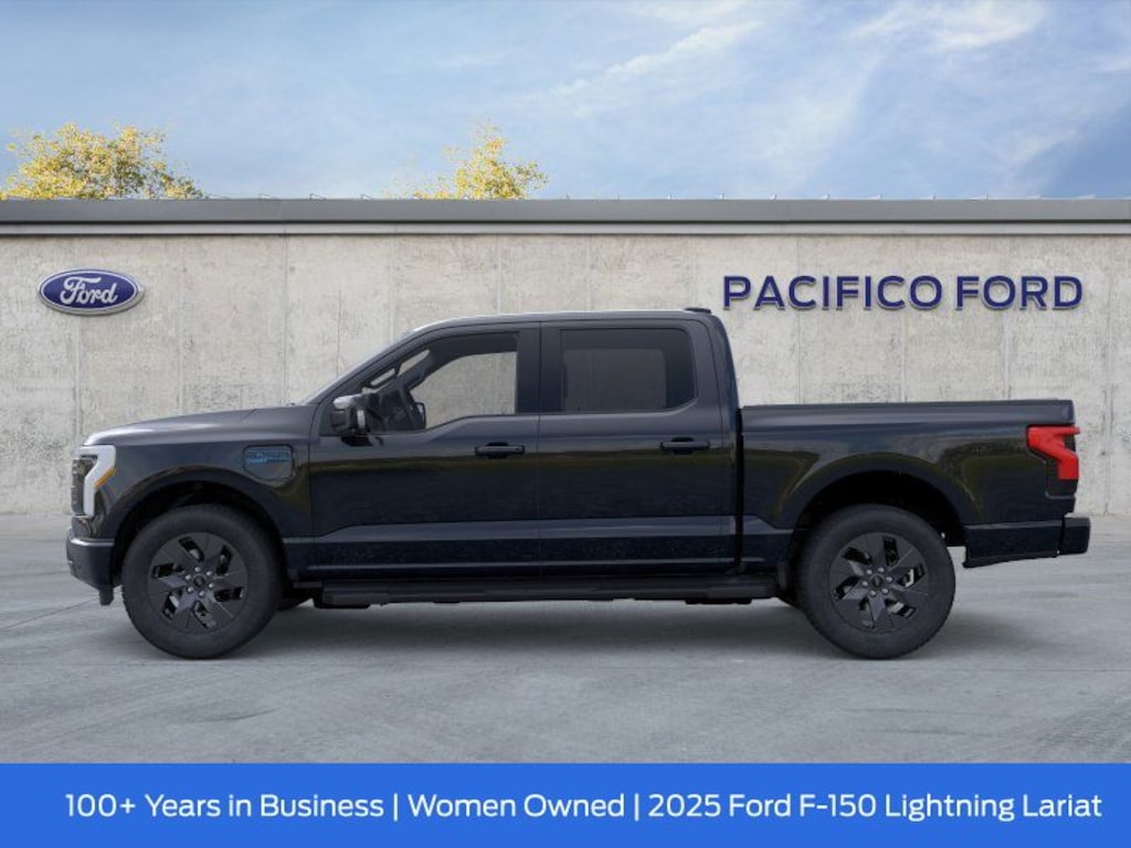 Pacifico Ford is proud to present you with another great new Ford. This 2025 Ford F-150 Lightning Lariat is loaded with the following Factory Options:Equipment Group 511A Standard, 4-Wheel Disc Brakes, 8 Speakers, ABS brakes, ActiveX Trimmed Heated & Ventilated Seats, Adjustable pedals, Air Conditioning, Alloy wheels, Auto High-beam Headlights, Auto tilt-away steering wheel, Auto-dimming door mirrors, Auto-dimming Rear-View mirror, Automatic temperature control, Brake assist, Bumpers: body-color, Compass, Delay-off headlights, Driver door bin, Driver vanity mirror, Dual front impact airbags, Dual front side impact airbags, Electronic Stability Control, Emergency communication system: SYNC 4 911 Assist, Four wheel independent suspension, Front anti-roll bar, Front Bucket Seats, Front Center Armrest, Front dual zone A/C, Front License Plate Bracket, Front reading lights, Fully automatic headlights, Heated door mirrors, Heated front seats, Heated rear seats, Heated steering wheel, Illuminated entry, Illuminated running boards, Knee airbag, Low tire pressure warning, Memory seat, Mobile Power Cord (120/240V), Navigation system: Connected Navigation, Occupant sensing airbag, Outside temperature display, Overhead airbag, Overhead console, Panic alarm, Passenger door bin, Passenger vanity mirror, Pedal memory, Power door mirrors, Power driver seat, Power moonroof, Power passenger seat, Power steering, Power windows, Radio data system, Radio: B&O Sound System by Bang & Olufsen, Rain sensing wipers, Rear anti-roll bar, Rear reading lights, Rear seat center armrest, Rear step bumper, Rear window defroster, Remote keyless entry, Security system, Speed control, Speed-sensing steering, Split folding rear seat, Steering wheel memory, Steering wheel mounted audio controls, SYNC 4A w/Enhanced Voice Recognition, Telescoping steering wheel, Tilt steering wheel, Traction control, Trip computer, Turn signal indicator mirrors, Variably intermittent wipers, Ventilated front seats, and Wheels: 20" Alloy Dark Carbonized Gray. Recent Arrival!