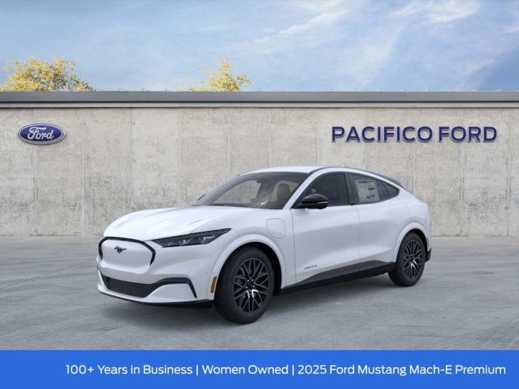 Pacifico Ford is proud to present you with another great new Ford. This 2025 Ford Mustang Mach-E Premium is loaded with the following Factory Options:Equipment Group 300A Standard Package, 10 Speakers, 4-Wheel Disc Brakes, ABS brakes, Air Conditioning, Alloy wheels, AM/FM radio: SiriusXM with 360L, Apple CarPlay/Android Auto, Auto High-beam Headlights, Auto-dimming Rear-View mirror, Automatic temperature control, Brake assist, Bumpers: body-color, Compass, Delay-off headlights, Driver door bin, Driver vanity mirror, Dual front impact airbags, Dual front side impact airbags, Electronic Stability Control, Emergency communication system: 911 Assist, Exterior Parking Camera Rear, Four wheel independent suspension, Front anti-roll bar, Front Bucket Seats, Front Center Armrest, Front dual zone A/C, Front reading lights, Fully automatic headlights, Garage door transmitter, Heated door mirrors, Heated front seats, Heated steering wheel, Heated/Ventilated Perforated ActiveX Bucket Seats, Illuminated entry, Knee airbag, Low tire pressure warning, Memory seat, Mobile Power Cord (120V/240V), Navigation system: Connected Navigation, Occupant sensing airbag, Outside temperature display, Overhead airbag, Overhead console, Panic alarm, Passenger door bin, Passenger vanity mirror, Power door mirrors, Power driver seat, Power Liftgate, Power passenger seat, Power steering, Power windows, Radio data system, Radio: B&O Sound System by Bang & Olufsen, Rain sensing wipers, Rear anti-roll bar, Rear seat center armrest, Rear side impact airbag, Rear window defroster, Rear window wiper, Remote keyless entry, Security system, SiriusXM w/360L, Speed control, Speed-sensing steering, Speed-Sensitive Wipers, Split folding rear seat, Spoiler, Steering wheel mounted audio controls, SYNC 4A w/Enhanced Voice Recognition, Telescoping steering wheel, Tilt steering wheel, Traction control, Trip computer, Turn signal indicator mirrors, Variably intermittent wipers, Ventilated front seats, and Wheels: 19" Bright Machined-Face Aluminum.