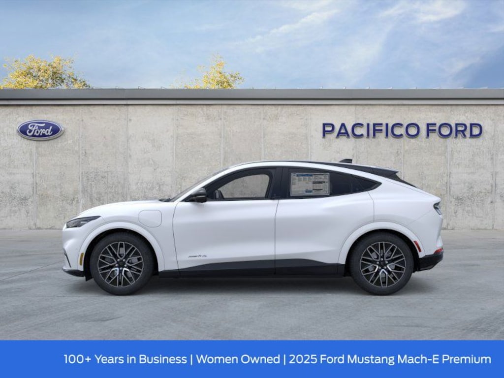 Pacifico Ford is proud to present you with another great new Ford. This 2025 Ford Mustang Mach-E Premium is loaded with the following Factory Options:Equipment Group 300A Standard Package, 10 Speakers, 4-Wheel Disc Brakes, ABS brakes, Air Conditioning, Alloy wheels, AM/FM radio: SiriusXM with 360L, Apple CarPlay/Android Auto, Auto High-beam Headlights, Auto-dimming Rear-View mirror, Automatic temperature control, Brake assist, Bumpers: body-color, Compass, Delay-off headlights, Driver door bin, Driver vanity mirror, Dual front impact airbags, Dual front side impact airbags, Electronic Stability Control, Emergency communication system: 911 Assist, Exterior Parking Camera Rear, Four wheel independent suspension, Front anti-roll bar, Front Bucket Seats, Front Center Armrest, Front dual zone A/C, Front reading lights, Fully automatic headlights, Garage door transmitter, Heated door mirrors, Heated front seats, Heated steering wheel, Heated/Ventilated Perforated ActiveX Bucket Seats, Illuminated entry, Knee airbag, Low tire pressure warning, Memory seat, Mobile Power Cord (120V/240V), Navigation system: Connected Navigation, Occupant sensing airbag, Outside temperature display, Overhead airbag, Overhead console, Panic alarm, Passenger door bin, Passenger vanity mirror, Power door mirrors, Power driver seat, Power Liftgate, Power passenger seat, Power steering, Power windows, Radio data system, Radio: B&O Sound System by Bang & Olufsen, Rain sensing wipers, Rear anti-roll bar, Rear seat center armrest, Rear side impact airbag, Rear window defroster, Rear window wiper, Remote keyless entry, Security system, SiriusXM w/360L, Speed control, Speed-sensing steering, Speed-Sensitive Wipers, Split folding rear seat, Spoiler, Steering wheel mounted audio controls, SYNC 4A w/Enhanced Voice Recognition, Telescoping steering wheel, Tilt steering wheel, Traction control, Trip computer, Turn signal indicator mirrors, Variably intermittent wipers, Ventilated front seats, and Wheels: 19" Bright Machined-Face Aluminum.