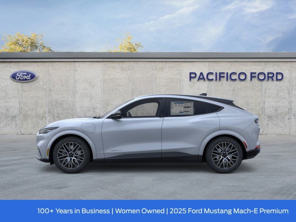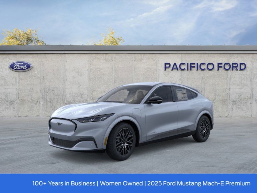 Pacifico Ford is proud to present you with another great new Ford. This 2025 Ford Mustang Mach-E Premium is loaded with the following Factory Options:Equipment Group 300A Standard Package, 10 Speakers, 4-Wheel Disc Brakes, ABS brakes, Air Conditioning, Alloy wheels, AM/FM radio: SiriusXM with 360L, Apple CarPlay/Android Auto, Auto High-beam Headlights, Auto-dimming Rear-View mirror, Automatic temperature control, Brake assist, Bumpers: body-color, Compass, Delay-off headlights, Driver door bin, Driver vanity mirror, Dual front impact airbags, Dual front side impact airbags, Electronic Stability Control, Emergency communication system: 911 Assist, Exterior Parking Camera Rear, Four wheel independent suspension, Front anti-roll bar, Front Bucket Seats, Front Center Armrest, Front dual zone A/C, Front reading lights, Fully automatic headlights, Garage door transmitter, Heated door mirrors, Heated front seats, Heated steering wheel, Heated/Ventilated Perforated ActiveX Bucket Seats, Illuminated entry, Knee airbag, Low tire pressure warning, Memory seat, Mobile Power Cord (120V/240V), Navigation system: Connected Navigation, Occupant sensing airbag, Outside temperature display, Overhead airbag, Overhead console, Panic alarm, Passenger door bin, Passenger vanity mirror, Power door mirrors, Power driver seat, Power Liftgate, Power passenger seat, Power steering, Power windows, Radio data system, Radio: B&O Sound System by Bang & Olufsen, Rain sensing wipers, Rear anti-roll bar, Rear seat center armrest, Rear side impact airbag, Rear window defroster, Rear window wiper, Remote keyless entry, Security system, SiriusXM w/360L, Speed control, Speed-sensing steering, Speed-Sensitive Wipers, Split folding rear seat, Spoiler, Steering wheel mounted audio controls, SYNC 4A w/Enhanced Voice Recognition, Telescoping steering wheel, Tilt steering wheel, Traction control, Trip computer, Turn signal indicator mirrors, Variably intermittent wipers, Ventilated front seats, and Wheels: 19" Bright Machined-Face Aluminum.